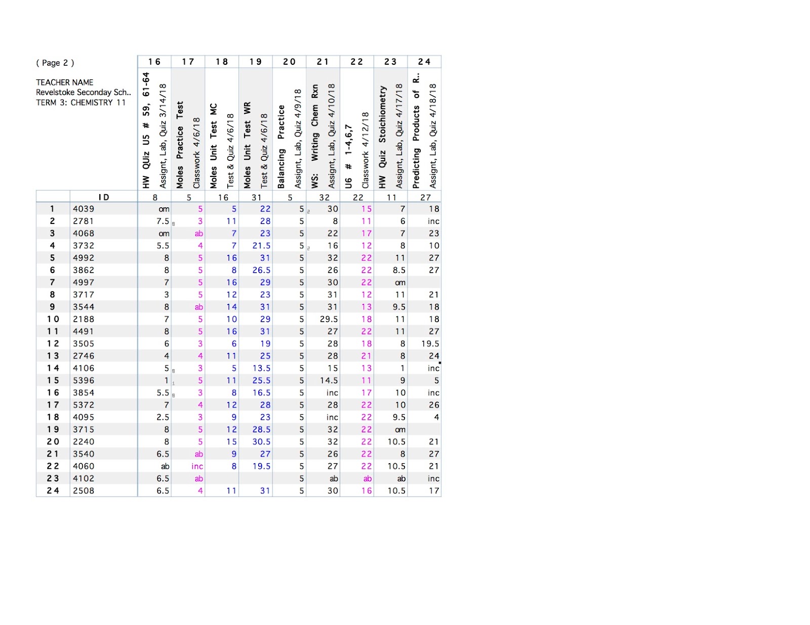 Chemistry 11: We wrote our Moles Unit Test.
